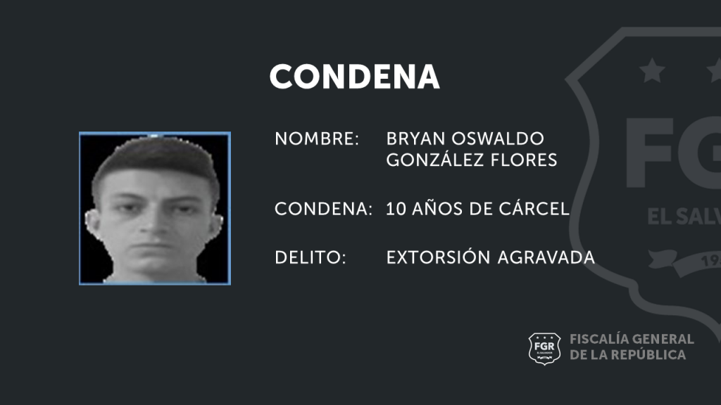 San Miguel. Bryan Oswaldo González Flores, integrante de la MS, recibió en dos ocasiones US$150.00 exigido a la víctima, y que fueron entregados en diferentes lugares de San Miguel, lo que le costará estar sus próximos 10 años en prisión.