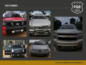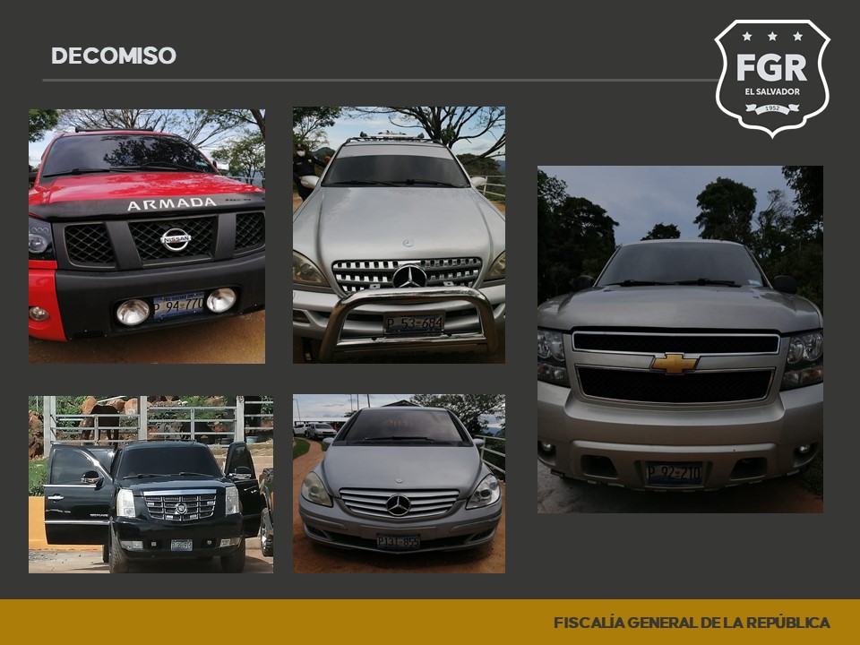 También se incautaron en el procedimiento 6 armas de fuego (4 fusiles y 2 revólveres), 8 vehículos automotores y US$2,585.00 en efectivo.