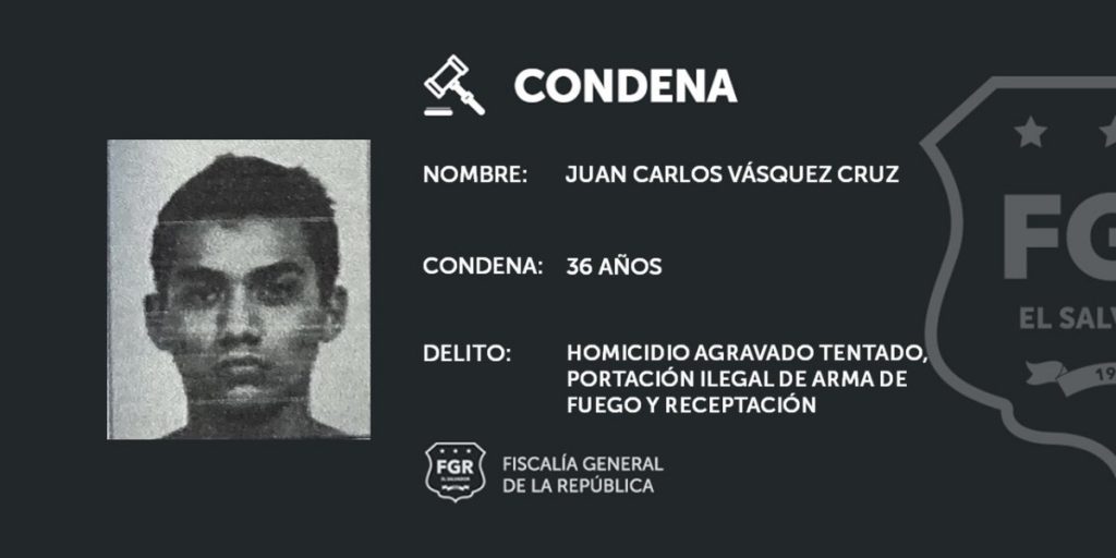 Vásquez Cruz fue declarado culpable por los delitos de Homicidio Agravado Imperfecto o Tentado, por lo que se le impuso 25 años de cárcel; otros 6 años por Receptación y 5 por la Tenencia y Portación Ilegal del Arma de Fuego.