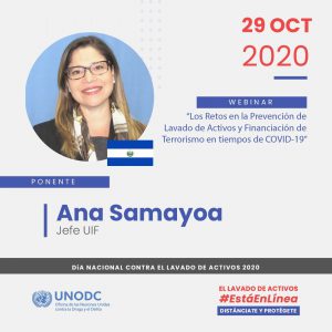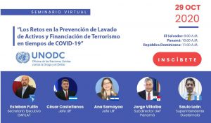 En el marco de celebración del Día Nacional de la Prevención del Lavado de Activos, la Unidad de Investigación Financiera de la Fiscalía General de la República, con el apoyo de la Oficina de las Naciones Unidas Contra la Droga y el Delito UNODC, desarrolló el evento: Retos en la prevención de lavado de activos y financiación de terrorismo en tiempos de COVID-19.