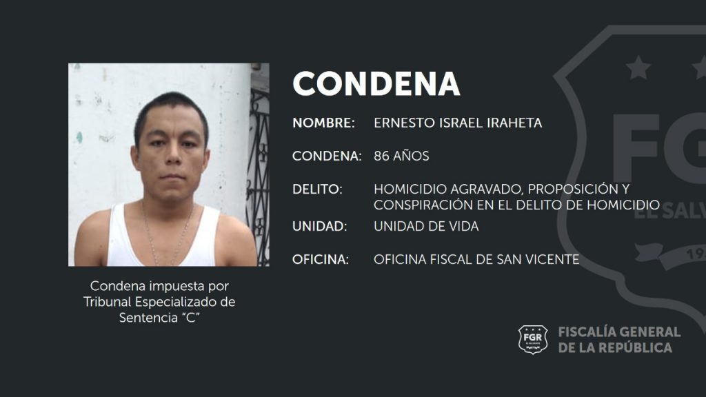 Son 32 pandilleros los condenados, entre ellos figura Ernesto Israel Iraheta Fernández, coordinador de clica, quien recibió 86 años; y Jesús Estrada Renderos, corredor de clica, a quien se le impuso la pena de 55 años.