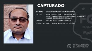 San Salvador. La Unidad Penal de la Dirección de Intereses del Estado ordenó la captura de un técnico III del departamento de Riesgo y Cambio Climático del Ministerio de Educación, por el delito de Concusión; luego de haber solicitado US$400.00 a una empresa constructora cambio de dar por recibidos cuatro proyectos de infraestructura realizados en el departamento Sonsonate.