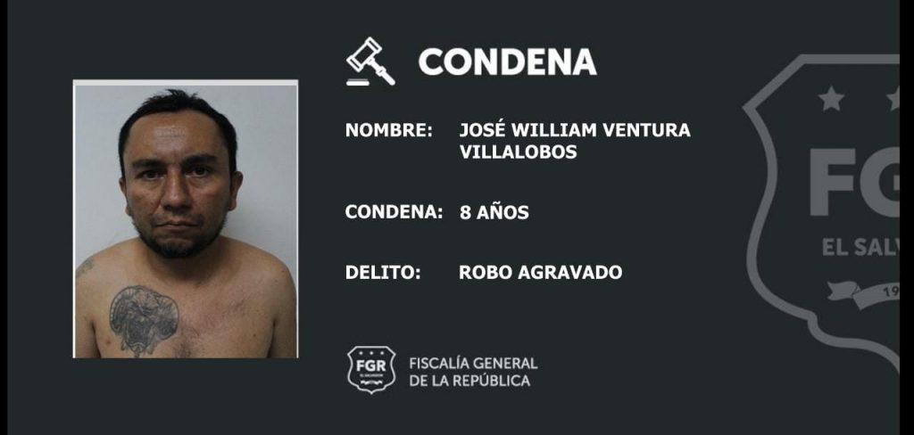 San Vicente. La Fiscalía General de la República busca que ninguna acción delictiva quede impune; en ese sentido y tras presentar abundantes pruebas fue posible condenar a prisión a José William Ventura Villalobos, miembro de la MS, quien se dedicaba a robar en el municipio de San Vicente.