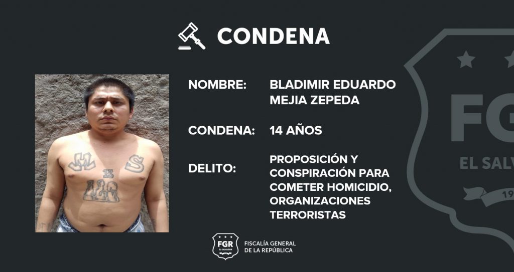 Con abundante prueba, la Fiscalía evidenció que Bladimir Eduardo Mejía Zepeda, líder de la clica Walter Locos Salvatruchos de la Mara Salvatrucha, MS-13, fue el responsable de planear y autorizar homicidios y extorsiones en los municipios de Cojutepeque, San Cristóbal y Santa Cruz Michapa, Cuscatlán.