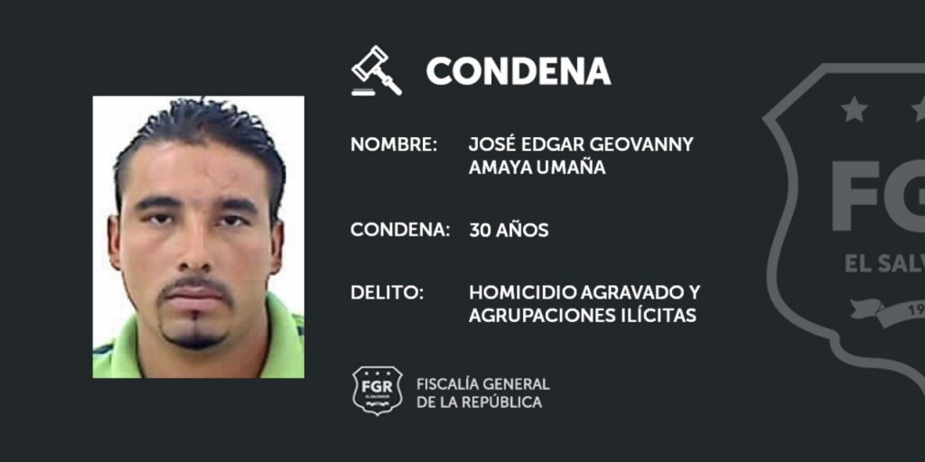 Otro de los terroristas de esta clica, José Edgar Geovanny Amaya Umaña, purgará una pena de prisión de 30 años por el crimen del taxista Amilcar Elenilson Machuca Molina, cometido el 7 de junio del año 2016, siempre en el centro de San Miguel.
