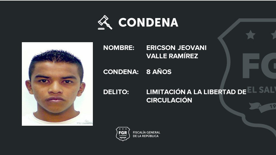 Sonsonate. Tras haber comprobado que Ericson Jeovani Valle Ramírez, alias Chocobito, limitó el derecho de circular libremente y vivir en el caserío El Paraíso, cantón El Cerro del municipio de Armenia, departamento de Sonsonate, la Fiscalía logró una condena de prisión por ocho años para el imputado pandillero.