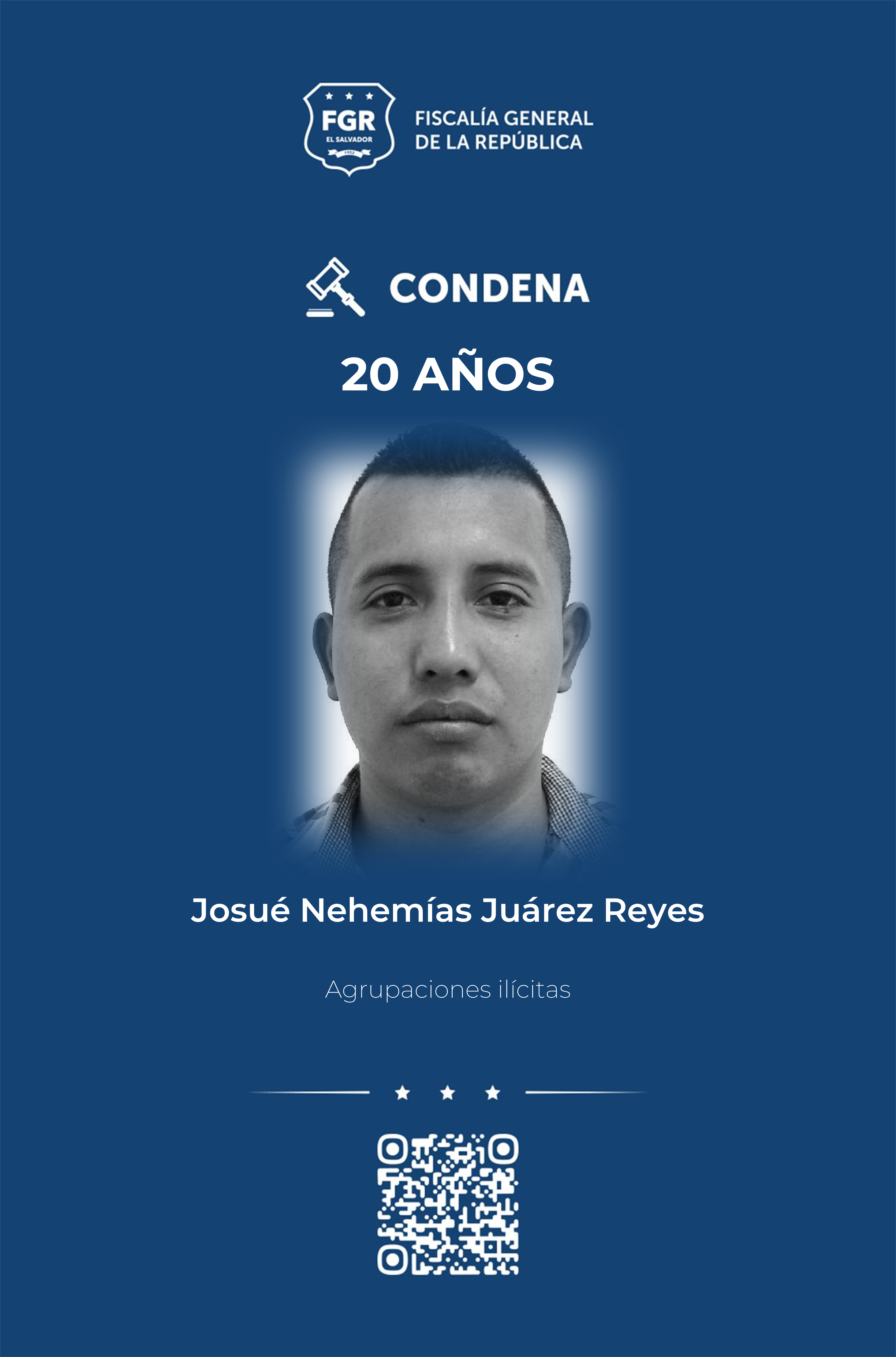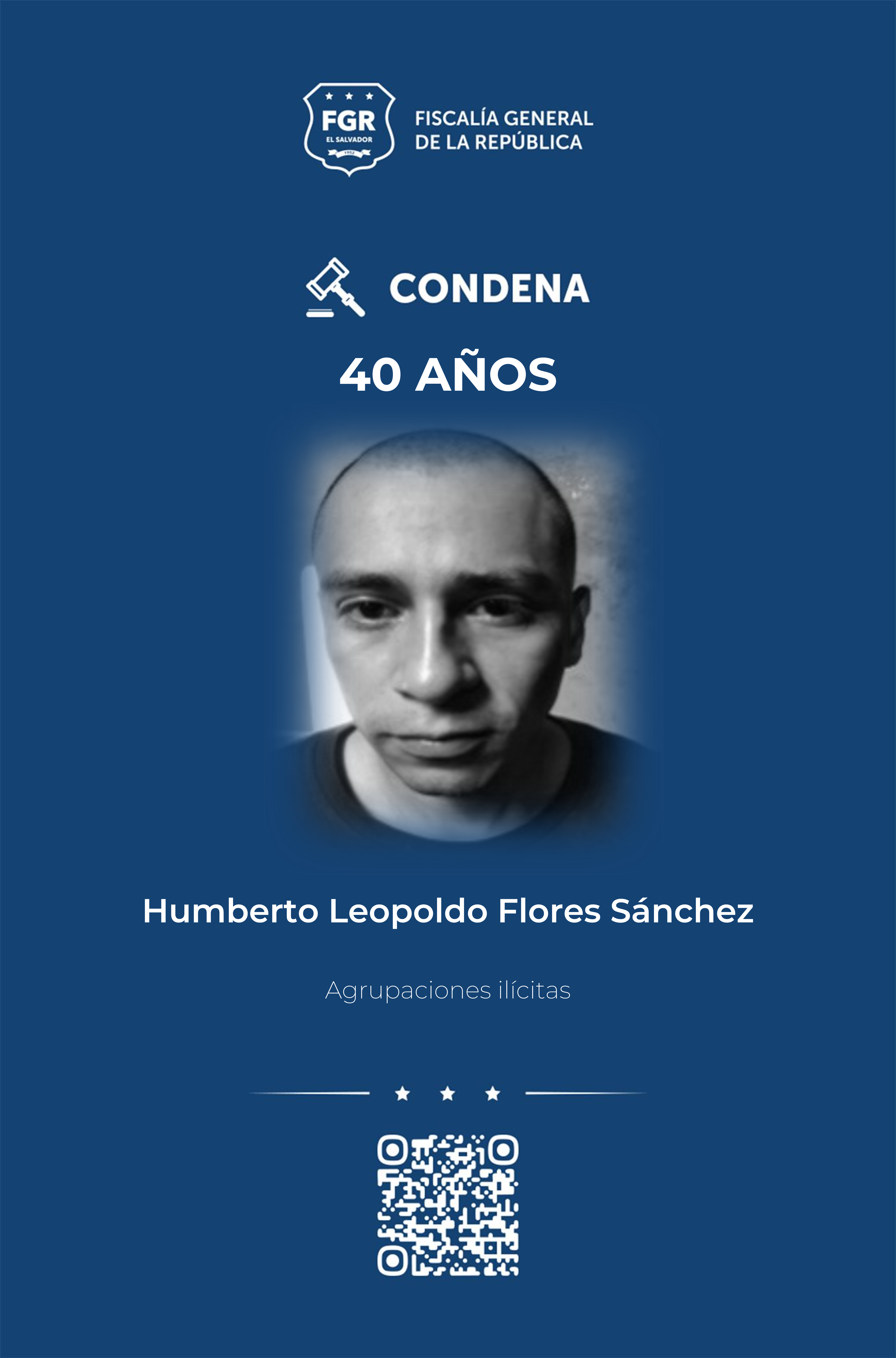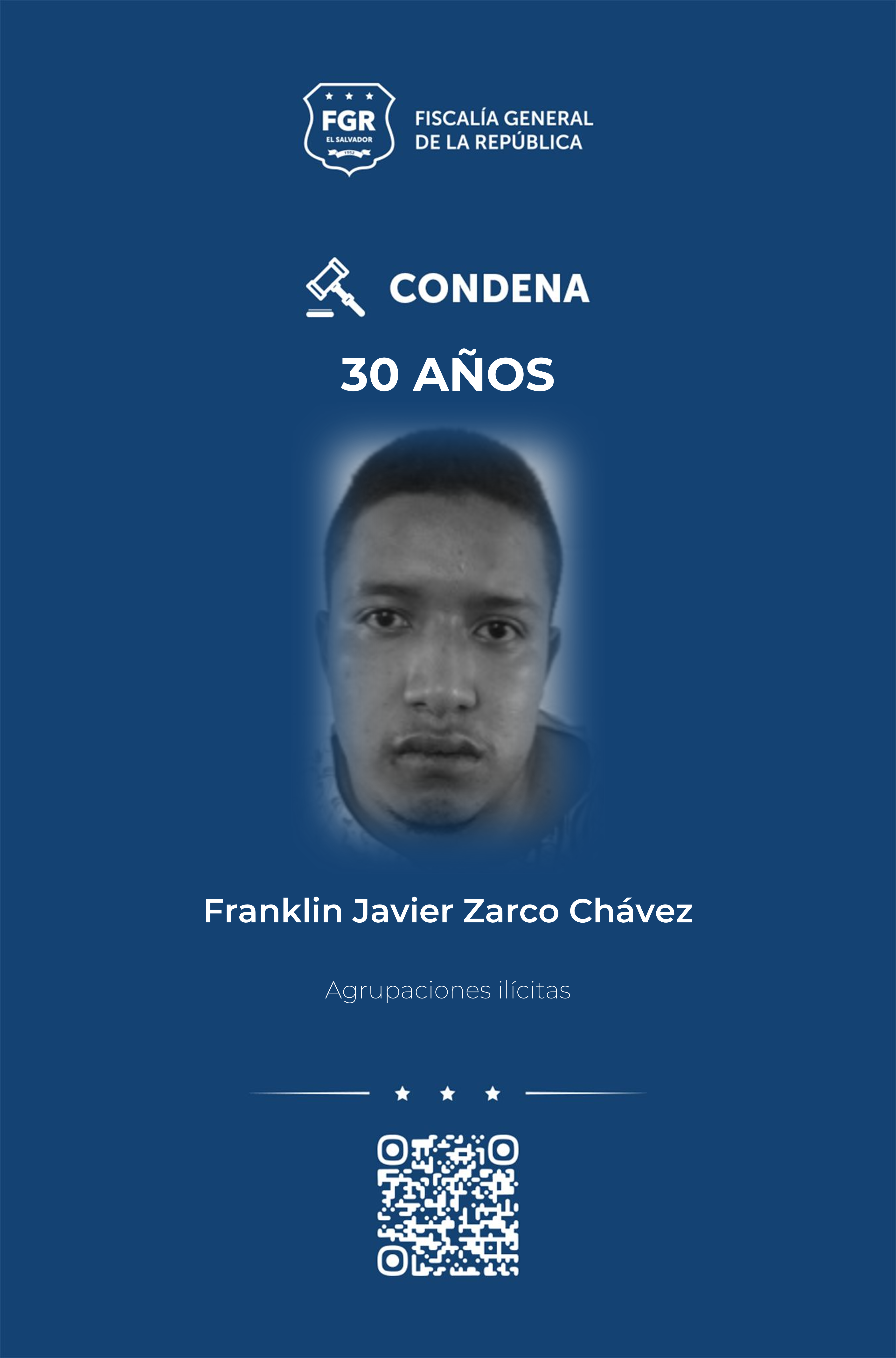 Además, Franklin Javier Zarco Chávez, Iván Alexander Guevara Sifontes, Edwin Walter Bonilla Ángel, José Daniel Villalta Deras, José Luis Hernández Mejía y César Edgardo Hernández Osorio, con el rango de chequeos, recibieron condenas de 30 años de prisión.