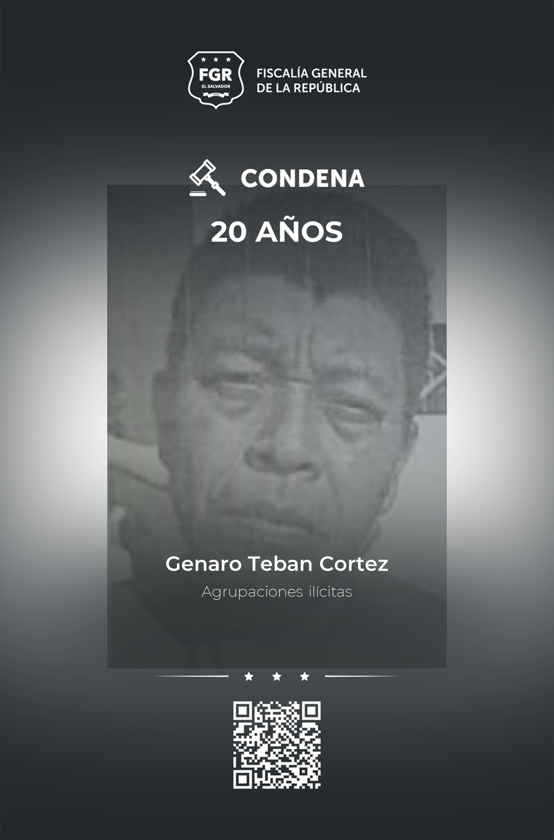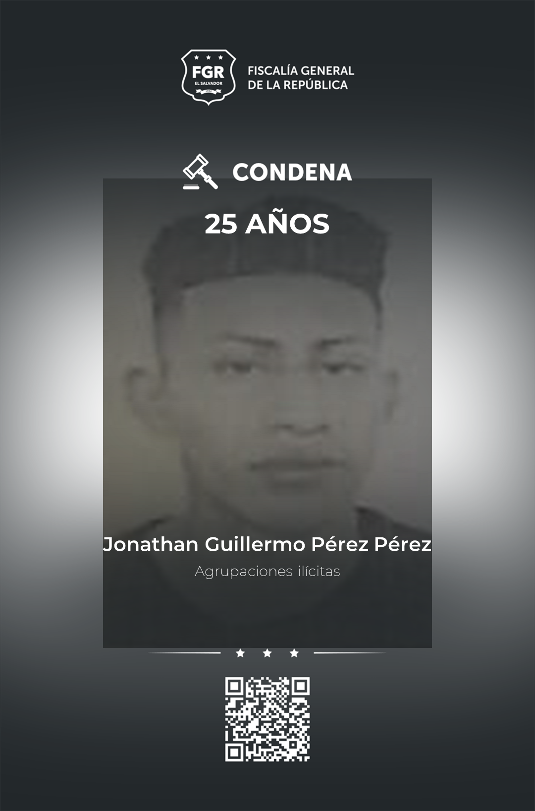 Entre las penas más altas está la de Juan Carlos Pérez Aguilar, quien fue sentenciado a 45 años de prisión. El imputado tenía rango de homboy con funciones de palabrero y gatillero en la estructura de la pandilla 18 revolucionarios.