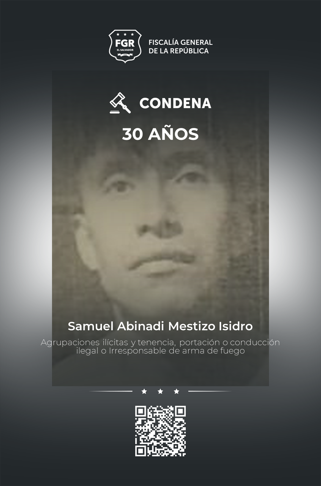 Mientras que Samuel Abinadi Mestizo Isidro, paro con funciones de poste, fue sentenciado a 15 años por agrupaciones ilícitas y 15 años por el delito de tenencia, portación o conducción ilegal o Irresponsable de arma de fuego, sumando un total de 30 años de cárcel.