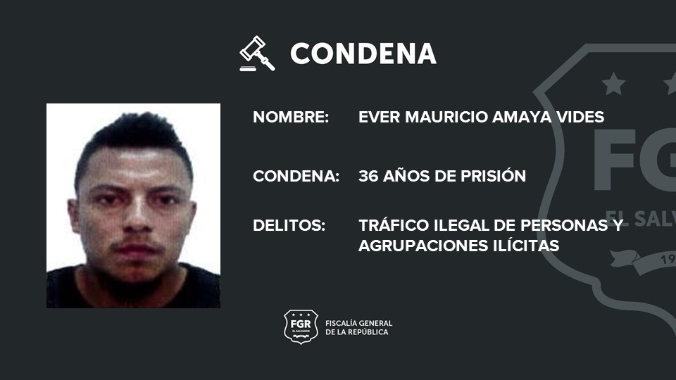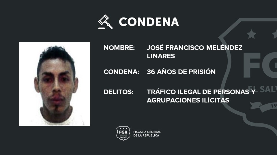 José Francisco Meléndez Linares y Ever Mauricio Amaya Vides recibieron una pena de 36 años de prisión, cada uno, por tráfico ilegal de personas y agrupaciones ilícitas.