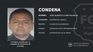 La Unión. La Unidad de Vida e Integridad Física de la oficina fiscal en La Unión logró la sentencia condenatoria de 25 años de cárcel en contra de José Alberto Clara Valencia por el delito de Homicidio Agravado en perjuicio de Manuel de Jesús Zavala Reyes, el cual fue cometido el 4 de septiembre de 2020, en el municipio de Pasaquina, departamento de La Unión.
