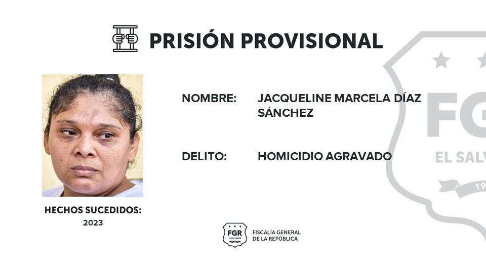 Santa Tecla. En la primera audiencia contra Jacqueline Marcela Díaz Sánchez, la Fiscalía General de la República (FGR) logró que la imputada de 42 años de edad se mantenga en detención provisional mientas siguen las investigaciones en su contra por haber asesinado a un hombre con quien mantenía una relación sentimental.