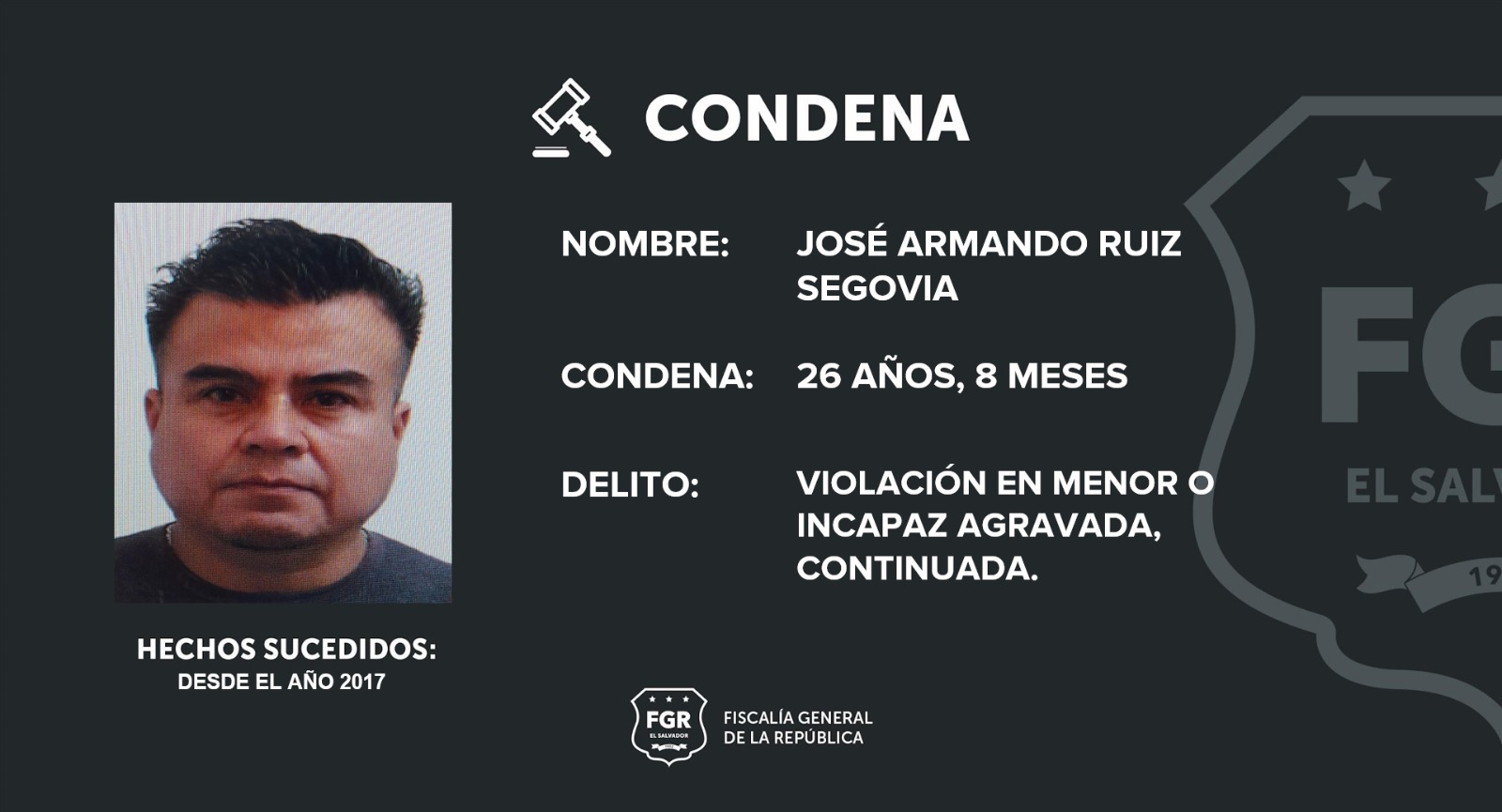 Luego de valorar y validar la prueba presentada por los fiscales en el juicio, el Tribunal Sexto de Sentencia de San Salvador impuso las penas antes mencionadas y los imputados están obligados a pagar $6,000 dólares en concepto de responsabilidad civil.