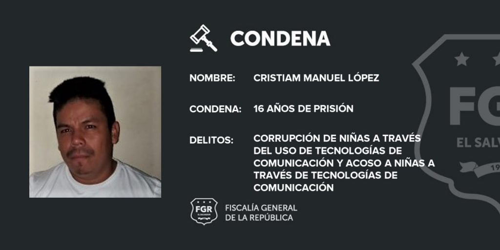 San Miguel. Fiscales de la Unidad de Atención Especializada para la Mujer, Niñez y Adolescencia de la oficina de San Miguel demostraron que Cristiam Manuel López, de 29 años de edad y con nacionalidad nicaragüense, cometió el delito de corrupción y acoso a través de la red social del WhatsApp por enviar mensajes de contenido sexual e incitar a realizar actos eróticos a una menor de 13 años.