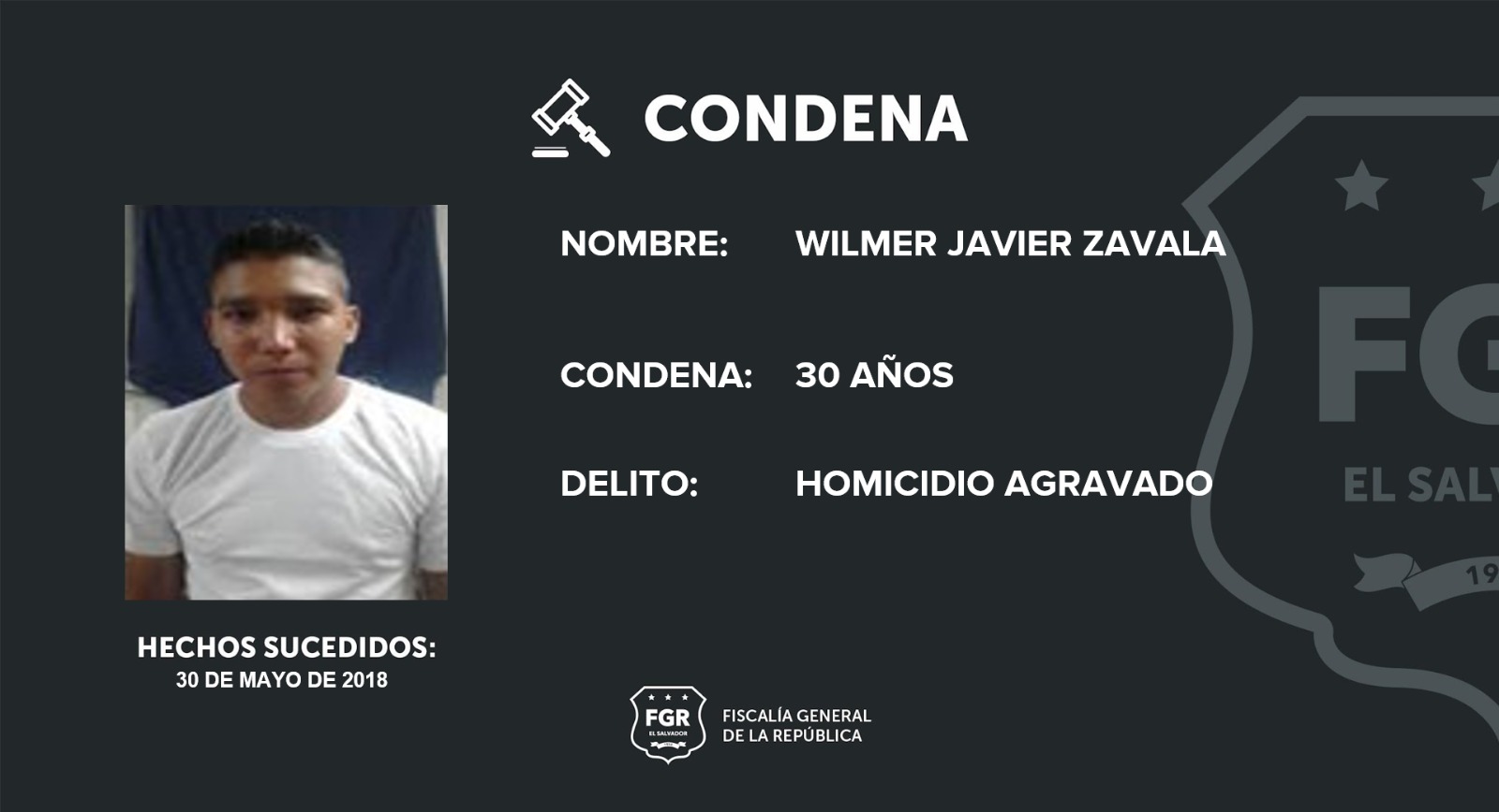 Mejicanos, San Salvador Centro. Gracias a la sólida investigación realizada por la Fiscalía General de la República (FGR), se logró condenar a Wilmer Javier Zavala, ciudadano nicaragüense, a 30 años de prisión por el delito de homicidio agravado, en perjuicio de su expareja.