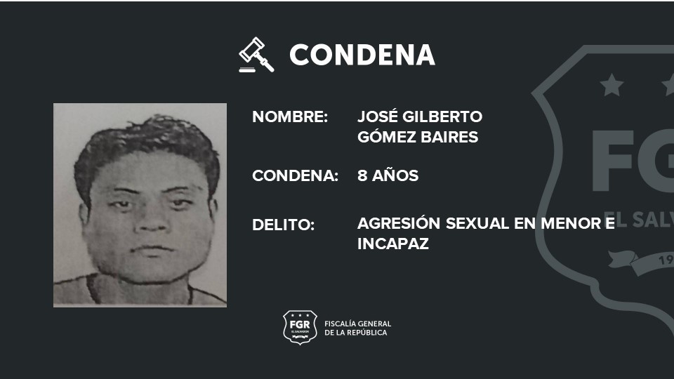 Santa Ana. José Gilberto Gómez Baires fue condenado a ocho años de cárcel luego de que la Fiscalía comprobara ante un juez que él agredió sexualmente a una menor de edad, en Santa Ana.