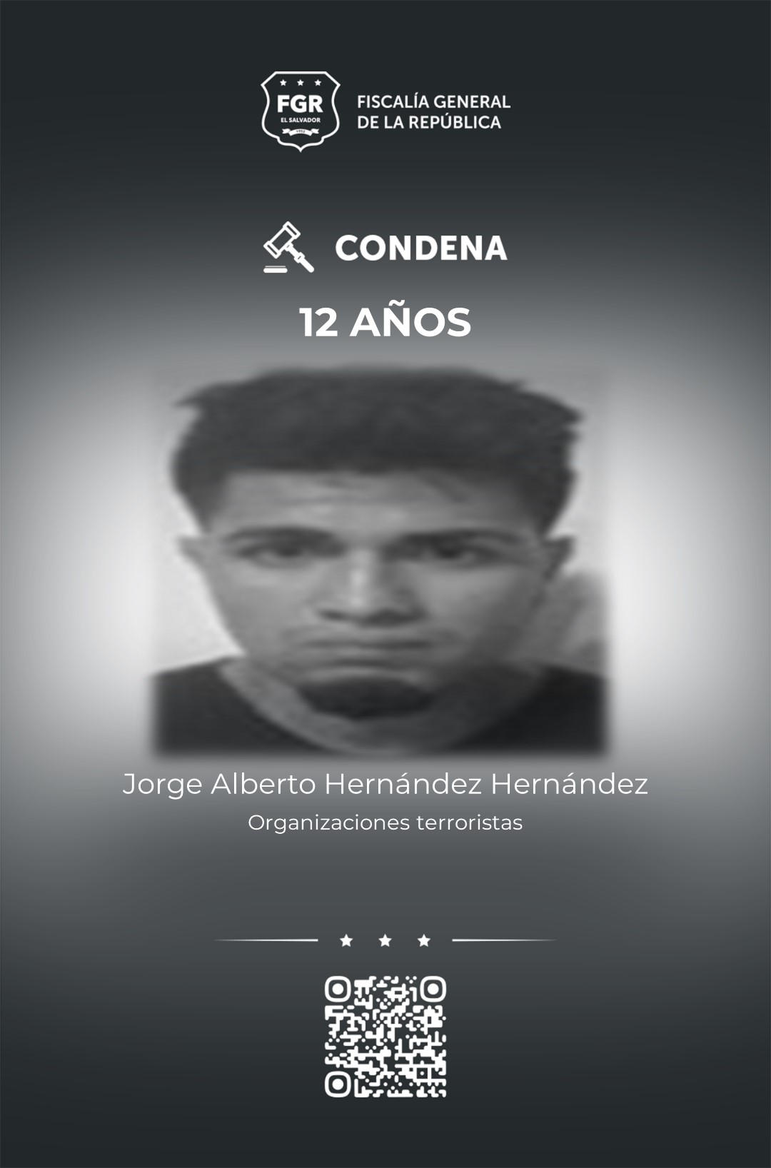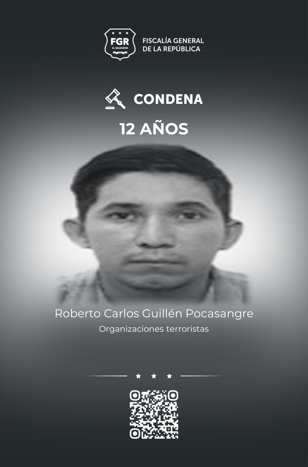 Mientras que a 12 años de prisión se les sentenció a: Roberto Carlos Guillén Pocasangre, Elmer Francisco Flores Lemus, Víctor Andrés Meléndez Monge, Jorge Alberto Hernández Hernández y José Ernesto Flores Rodríguez.
