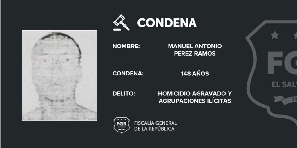 La FGR presentó elementos probatorios como la entrevista de un testigo criteriado, quien confirmó la participación de los condenados en los hechos delictivos, además de prueba documental y pericial la cual fue clave para que el Tribunal Segundo de Sentencia de Santa Tecla impusiera las penas de prisión por los delitos de Homicidio Agravado y Agrupaciones Ilícitas.