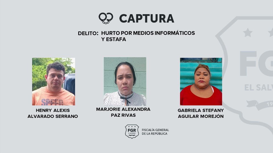 Entre los capturados están: Sandra Lorena López, María de los Ángeles Ramos, Salvador Antonio Góngora Ayala, Rafael Antonio Rosales López, Marjorie Alexandra Paz Rivas, Gabriela Stefany Aguilar Morejón, Henry Alexis Alvarado Serrano y Karina Ivette Chacón Vásquez.