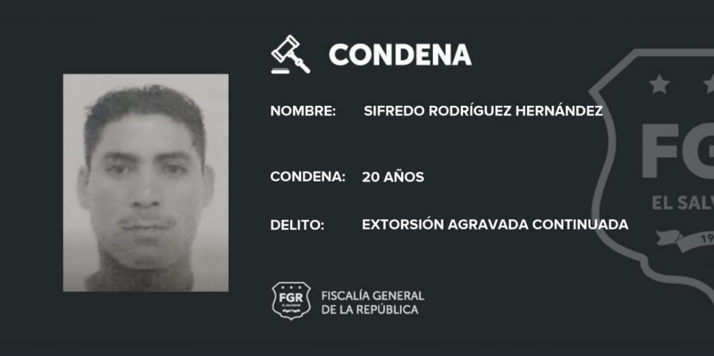 Los imputados enfrentaron la vista pública en el Tribunal Segundo de Sentencia de Santa Tecla, en donde se les declaró responsables por el delito de Extorsión Agravada Continuada y purgarán la pena descrita; además, tendrán que pagar $2,100 dólares en concepto de responsabilidad civil a favor de la persona ofendida.