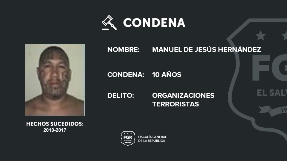 Además, Manuel de Jesús Hernández, alias Cazador,  fue sentenciado a 10 años de prisión por el delito de organizaciones terroristas.