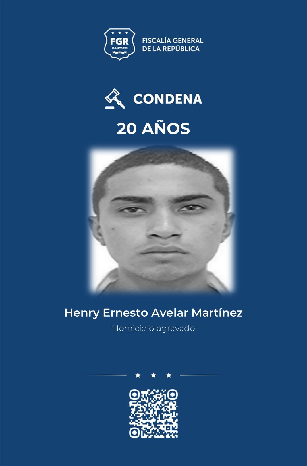 Chalatenango. Henry Ernesto Avelar Martínez fue condenado a 20 años de prisión por asesinar a un hombre con arma de fuego, en octubre del 2017, en la jurisdicción de Nueva Concepción, Chalatenango Centro.