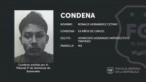 El juzgador al finalizar la audiencia dio validez a la evidencia presentada por la Fiscalía, declarando culpable a Ronald Hernández Cetino, y le impone la pena de 10 años de cárcel; sobre este caso se informó que el resto de los sujetos que participaron en el hecho ya han sido condenados.