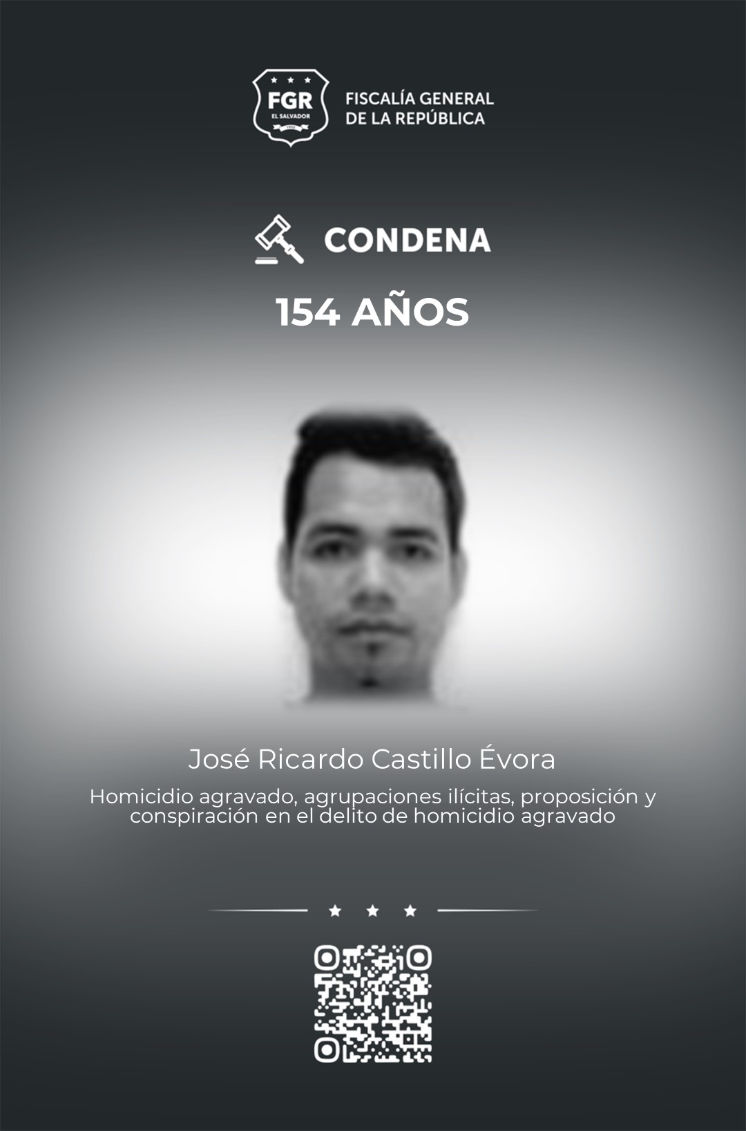 A José Ricardo Castillo Évora se le impuso la pena de 154 años de prisión por los delitos de proposición y conspiración en el delito homicidio agravado, dos casos de homicidio agravado entre ellos el doble homicidio de las mujeres antes mencionadas y agrupaciones ilícitas.