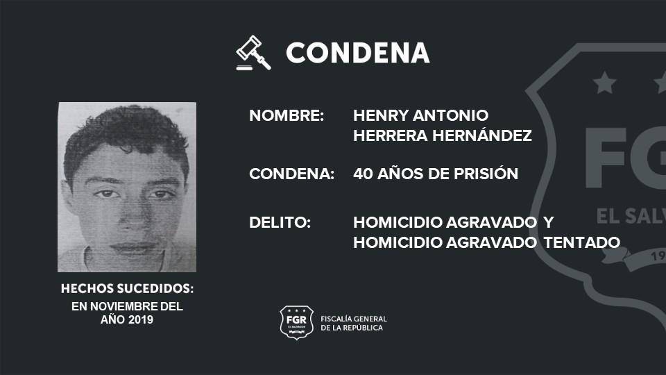 El juicio se desarrolló en el Juzgado de Sentencia de Cojutepeque y con base a las pruebas presentadas por la FGR, se declaró responsable a Herrera Hernández y le impuso 30 años por el homicidio agravado consumado y 10 años por el homicidio agravado tentado.