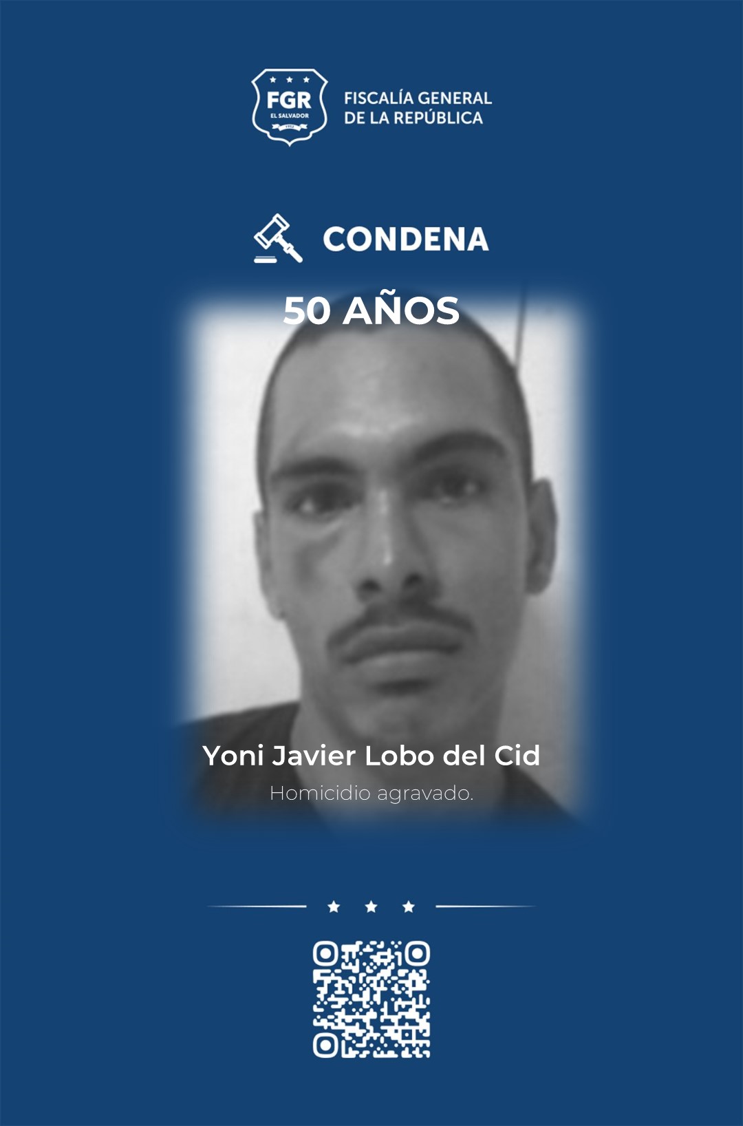 La FGR también consiguió que Yoni Javier Lobo del Cid, sea condenado a 50 años de cárcel por asesinar con un arma de fuego al vigilante de un negocio ubicado en el distrito del Divisadero. El crimen ocurrió en noviembre de 2016.