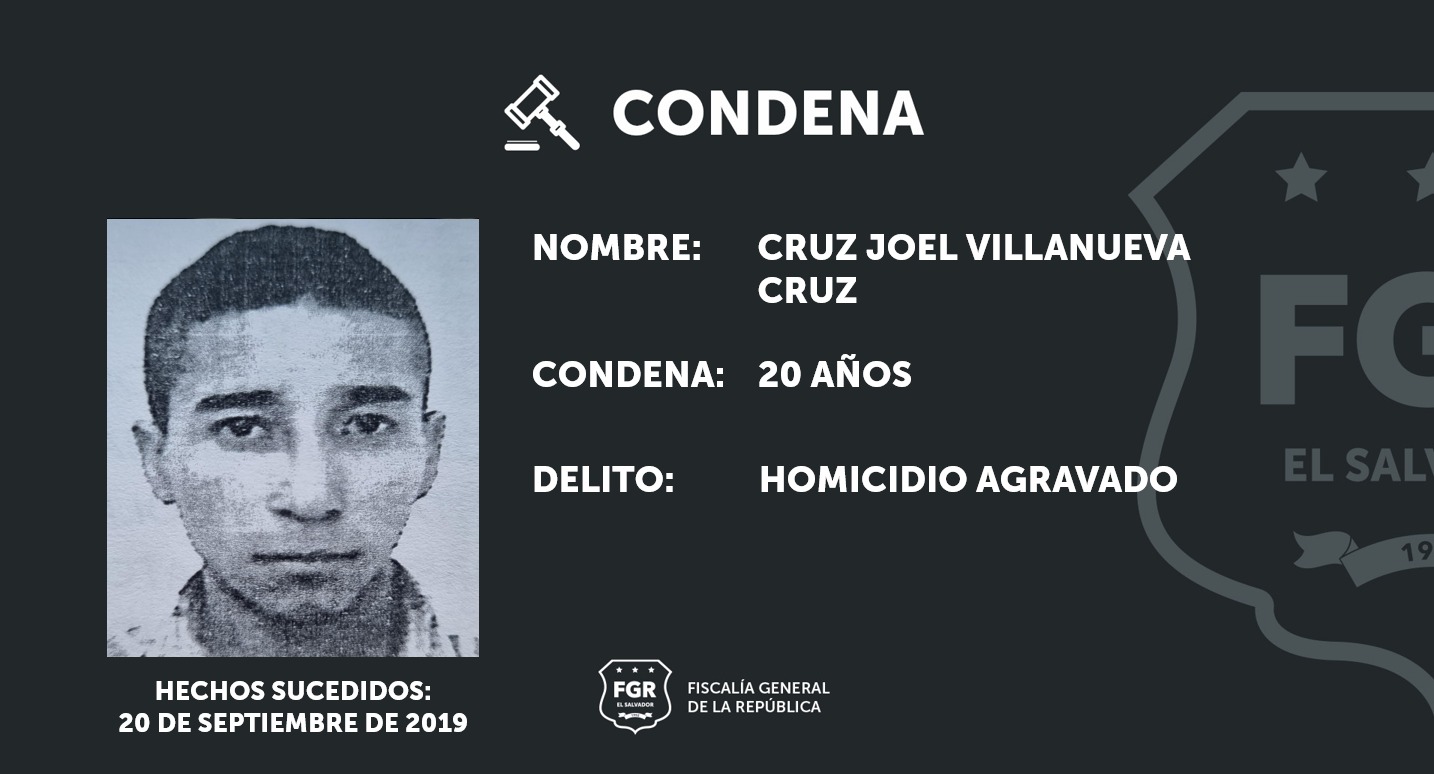 Ilobasco, Cabañas. Gracias a la investigación realizada por los fiscales se logró condenar a Cruz Joel Villanueva Cruz a 20 años de prisión por el delito de homicidio agravado.