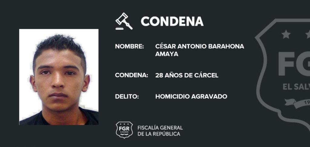 San Vicente. Una condena de 28 años de cárcel para César Antonio Barahona Amaya por haberle quitado la vida a un trabajador en San Vicente porque consideró que pasaba información a la policía sobre él y su pandilla; con ello la Fiscalía garantizó un castigo justo para el miembro de la Mara Salvatrucha, MS-13, quien delinquía en los alrededores del municipio de San Ildefonso, al norte del departamento de San Vicente.