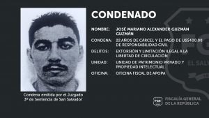 Apopa. Fiscales de la Unidad de Delitos Relativos al Patrimonio Privado y Propiedad Intelectual de la sede de Apopa lograron que el pandillero José Mariano Alexander Guzmán Guzmán recibiera una condena de 22 años de prisión, por los delitos de Extorsión Agravada y Limitación Ilegal a la Libre Circulación.