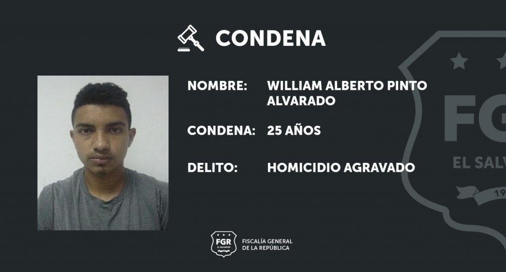 San Vicente. William Alberto Pinto Alvarado, miembro de la clica Downtown Criminales Salvatruchos, de la Mara Salvatrucha (MS-13), pasará los próximos 25 años en la cárcel por el delito de Homicidio Agravado en perjuicio de un conductor de mototaxi.
