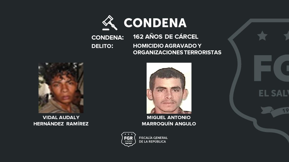 También, Vidal Audaly Hernández Ramírez y Miguel Antonio Marroquín Angulo fueron sentenciados a 162 años de prisión por tres homicidios y organizaciones terroristas.
