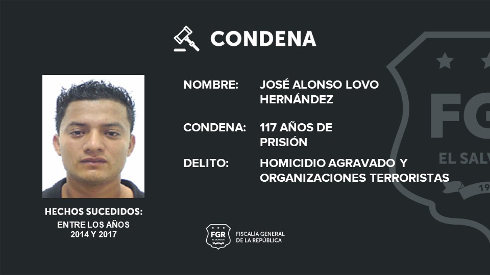 José Alonso Lovo Hernández recibió 117 años de cárcel por dos homicidios, un secuestro y organizaciones terroristas.