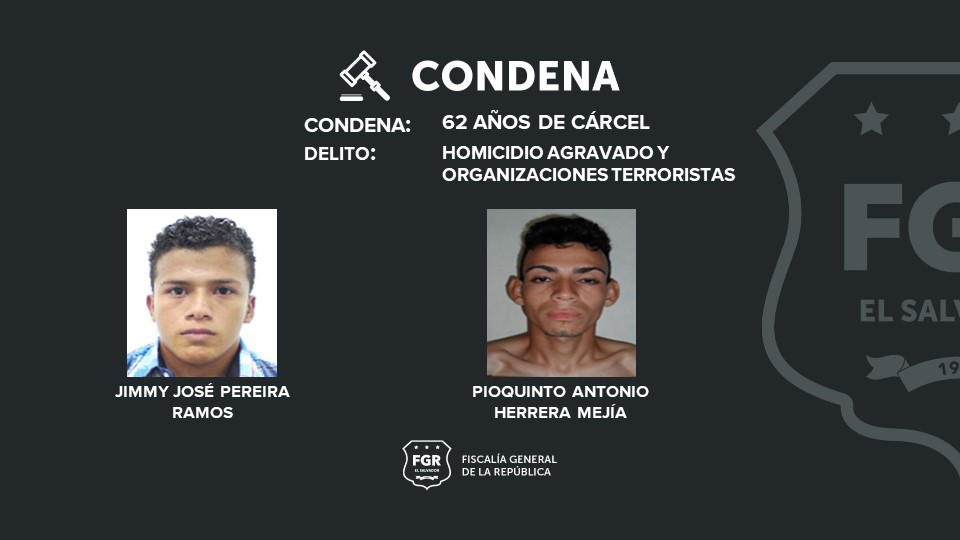 También a Jimmy José Pereira Ramos y Pioquinto Antonio Herrera Mejía se les impuso 62 años de cárcel a cada uno, por un homicidio agravado y organizaciones terroristas.