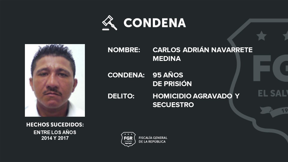 Carlos Adrián Navarrete Medina estará en prisión sus próximos 95 años por un homicidio agravado y secuestro. Y a Josué Reynaldo Torres Zelaya se le impusieron 72 años u homicidio agravado, robo y organizaciones terroristas.