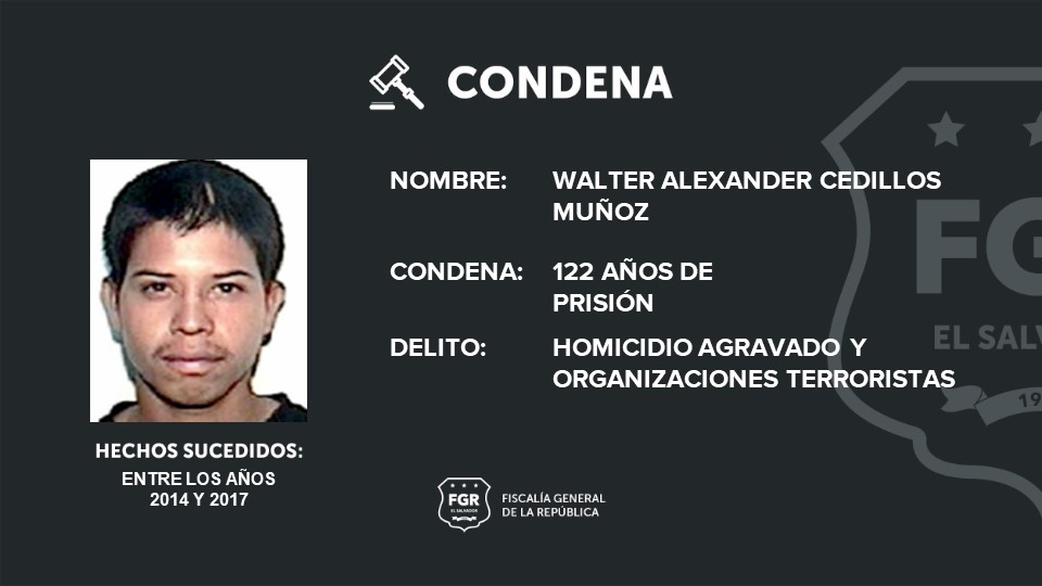 A Walter Alexander Cedillos Muñoz se le condenó a 122 años por tres homicidios y organizaciones terroristas.