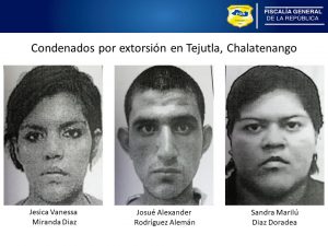 Chalatenango. En Vista Publica desarrollada en el Tribunal de Sentencia de Chalatenango se condenó a una pena de 15 años de prisión a tres miembros de una estructura terrorista, por el delito de Extorsión Agravada, en perjuicio de una persona que goza de régimen de protección a víctima y testigo de clave “Zeus”; el hecho ocurrió el mes de marzo de 2017, en el municipio de Tejutla, departamento de Chalatenango.