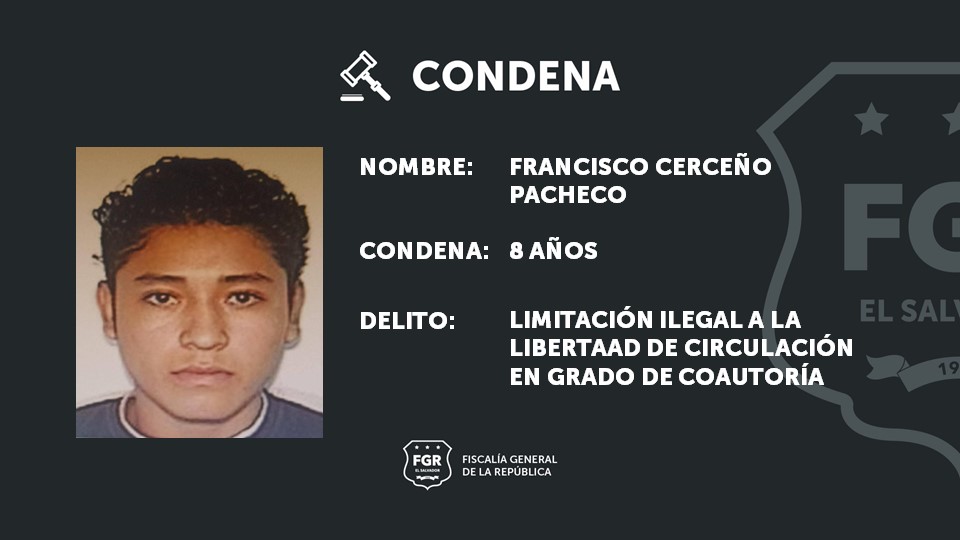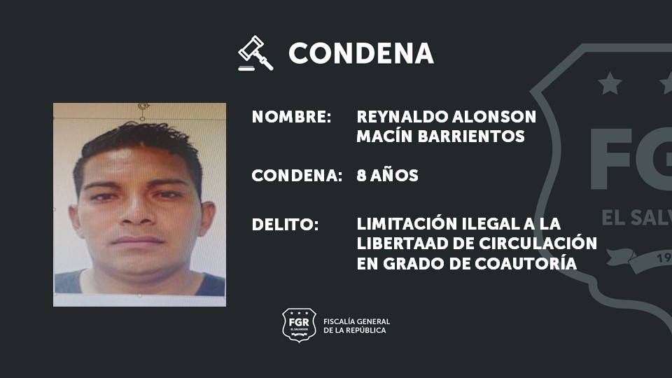 Sonsonate. Edgar Arnulfo Salazar Shunico, Francisco Cerceño Pacheco, Saúl Ernesto García Y Reynaldo Alonso Macín Barrientos fueron condenados a ocho años de cárcel luego de que la víctima declara que ellos le amenazaron de muerte por no unirse a la pandilla, y debía irse de la zona junto con su familia para no ser agredidos.