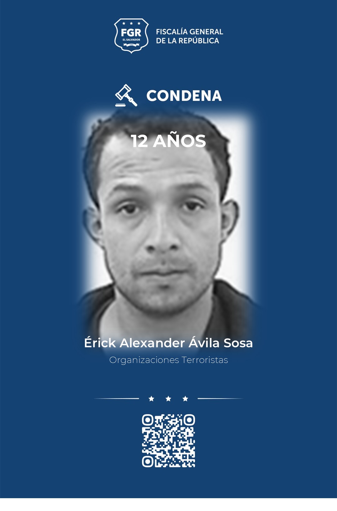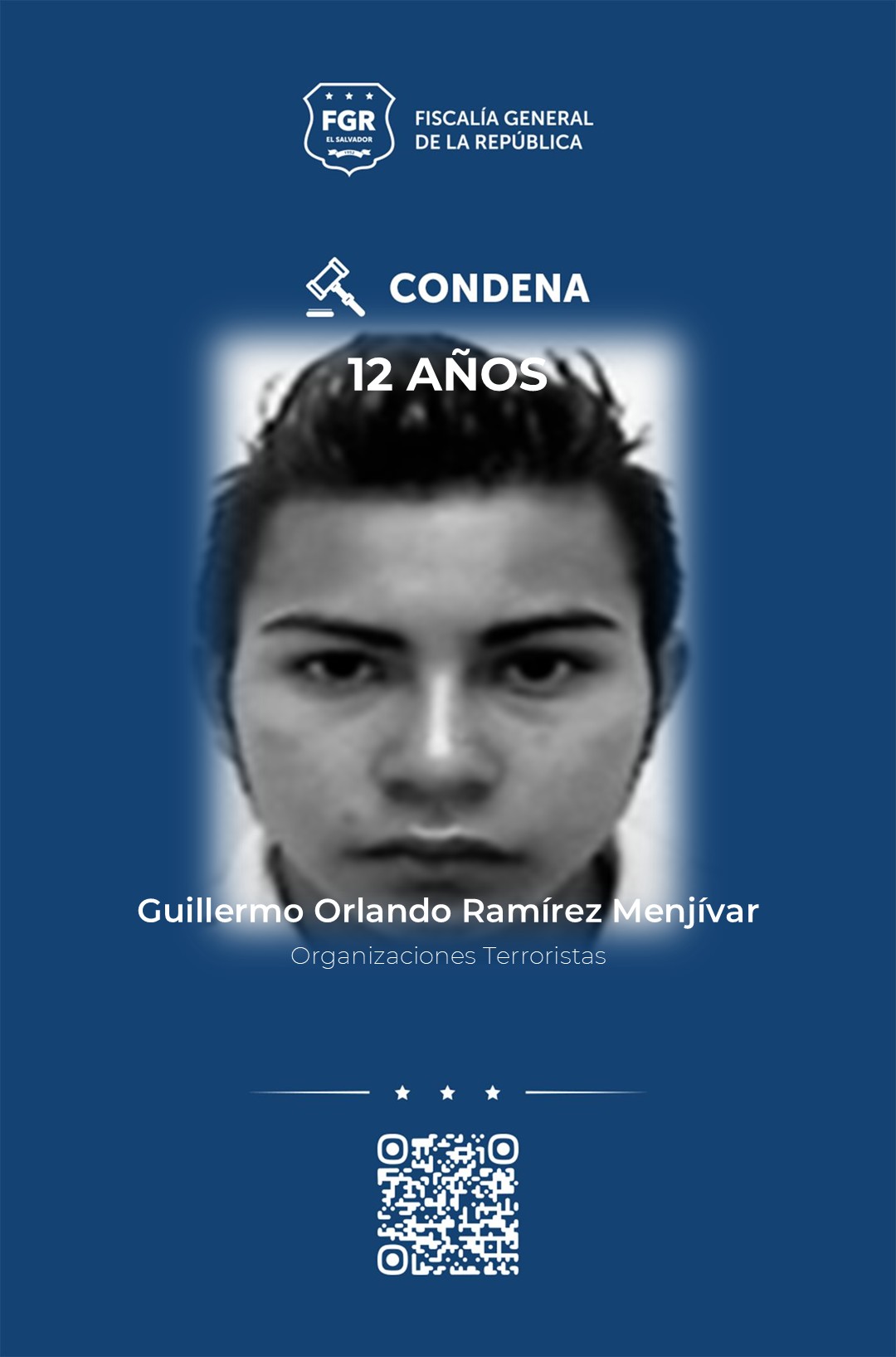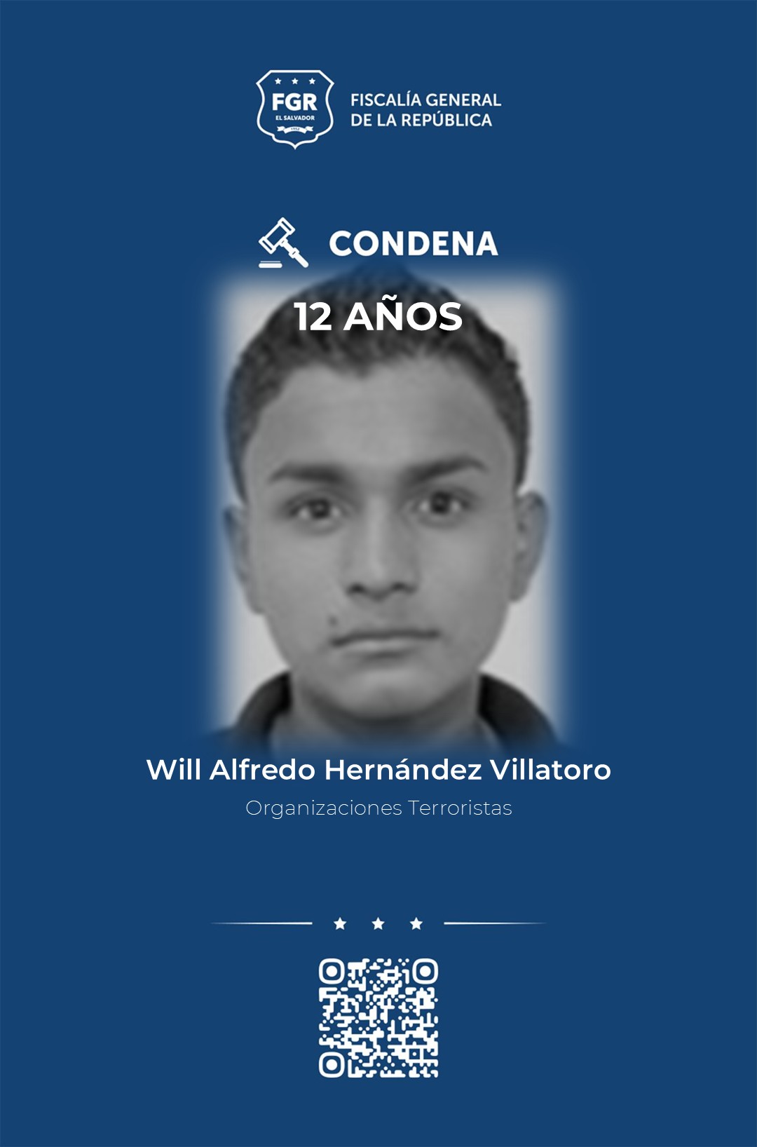 Por esa misma pena y por el delito de organizaciones terroristas fue condenado Will Alfredo Hernández Villatoro, alias el infierno; Erick Alexander Ávila Sosa, alias viejo yiyo y Guillermo Orlando Ramírez Menjívar, alias el legendario.