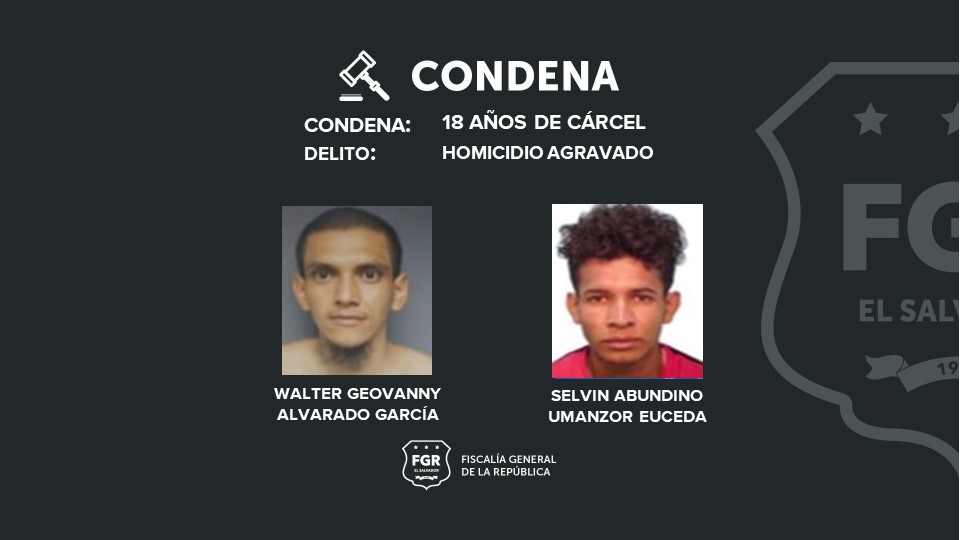 A 18 años de cárcel fueron condenados los reos presentes Walter Geovanny Alvarado García y Selvin Abundino Umanzor Euceda, mientras que Luis Adonay Velásquez, en rebeldía, fue sentenciado a 20 años de prisión.