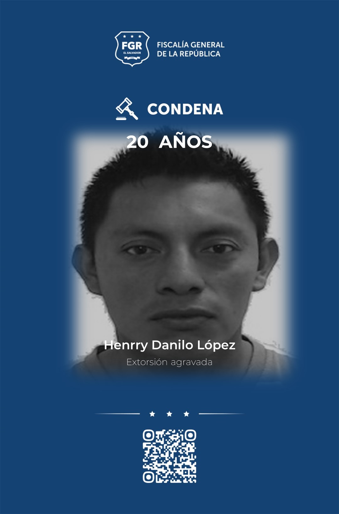 Morazán. Henry Danilo López, alias mulón, Franklin Ernesto Portillo, José Santos Claros Flores, alias chepe y Nelson Orlando Pérez , alias la sabrosa, todos miembros activos de la mara salvatrucha, fueron condenados a 20 años de cárcel por cometer extorsión agravada.