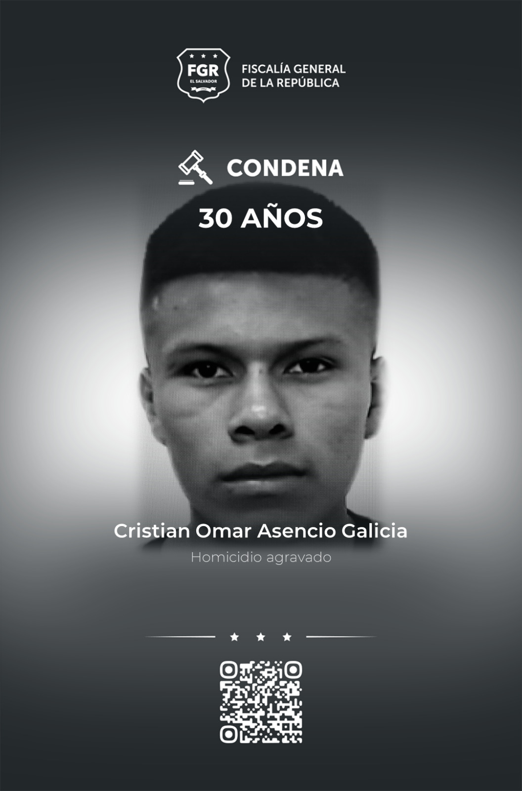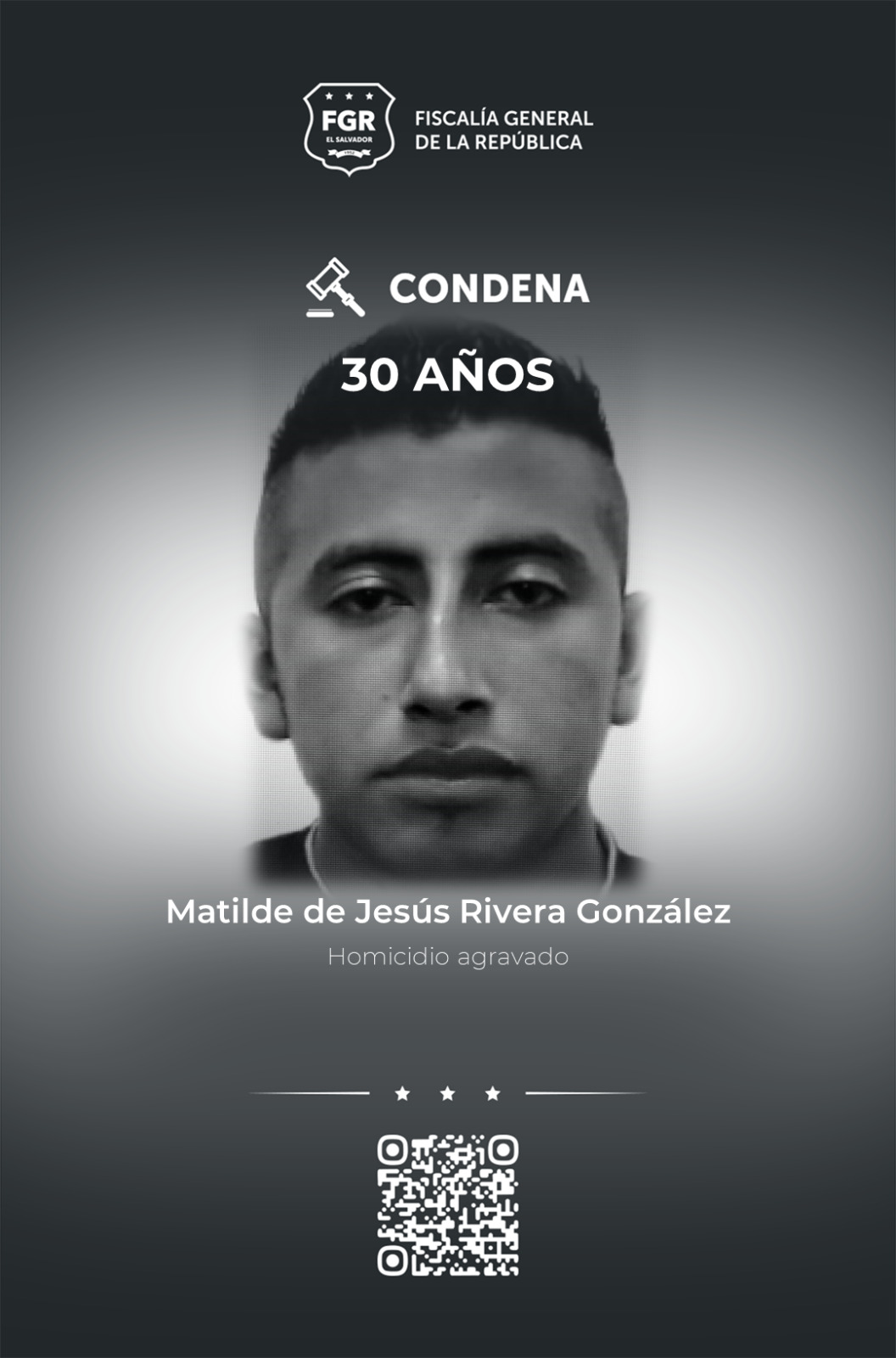 Ahuachapán. La Fiscalía General de la República (FGR) logró que Miguel Ángel Cruz Jacobo, alias rata; Cristian Omar Asencio, alia galicia quitan; Edwar José Asencio Osorio, alias chepe; José Miguel Rivera Colocó, alias chemi, y Matilde de Jesús Rivera González, alias gato, fueron condenados a 30 años de prisión cada uno por el delito de homicidio agravado en perjuicio de una víctima.