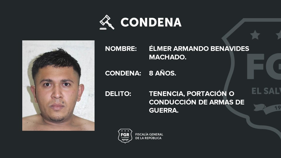 Gracias al trabajo de la Fiscalía General de la República (FGR), Élmer Armando Benavides Machado fue condenado a 8 años de prisión por Tenencia, Portación o Conducción de Armas de Guerra; Ramón Alexis Hernández Centeno también fue sentenciado a cárcel por Tenencia, Portación o Conducción Ilegal o Irresponsable de Armas de Fuego.