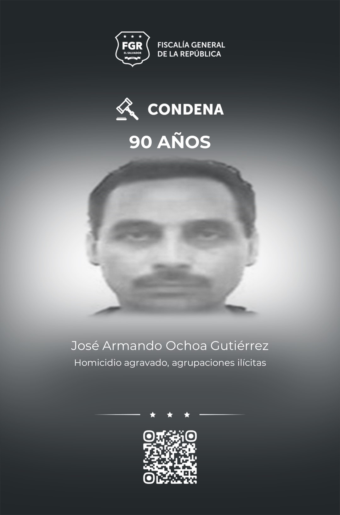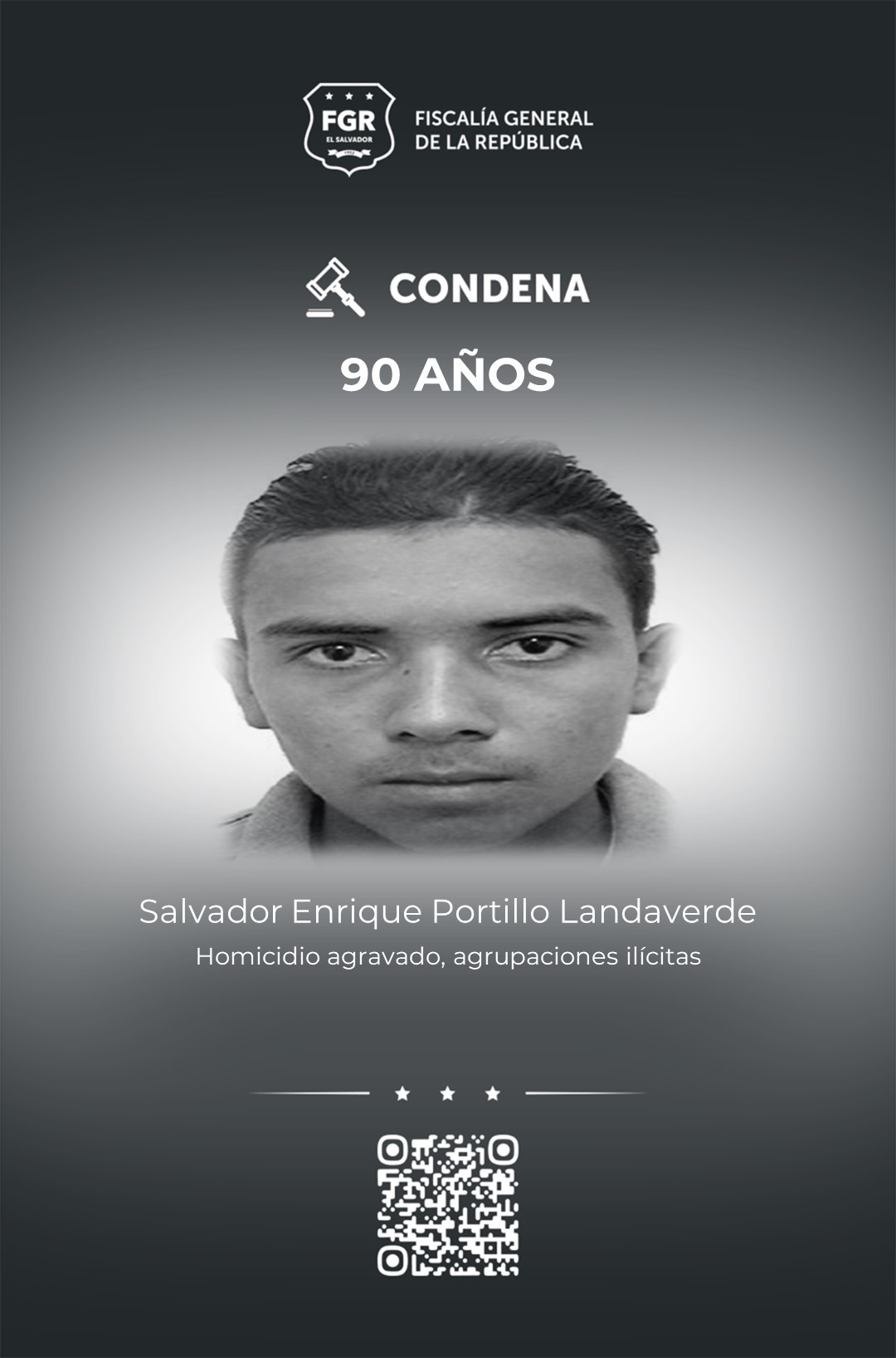 Chalatenango. La Fiscalía logró justicia para un agente de la Policía Nacional Civil que fue asesinado por Francis Antonio Gómez Calderón, Salvador Enrique Portillo Landaverde y José Armando Vásquez Rodríguez. El primero fue condenado a 105 años de prisión y los otros dos a 90.