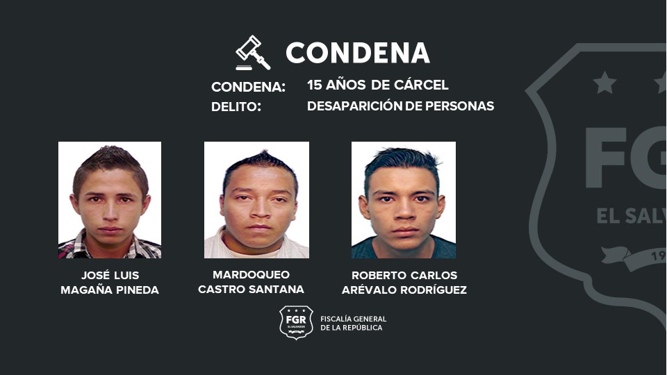 Ahuachapán. Siete pandilleros de la MS han recibido una condena de 15 años de prisión tras ser encontrados culpables del delito de desaparición de personas. Estos sujetos desaparecieron a una persona que trabajaba en una milpa ubicada en el caserío El Botadero del cantón El Roble, Ahuachapán.