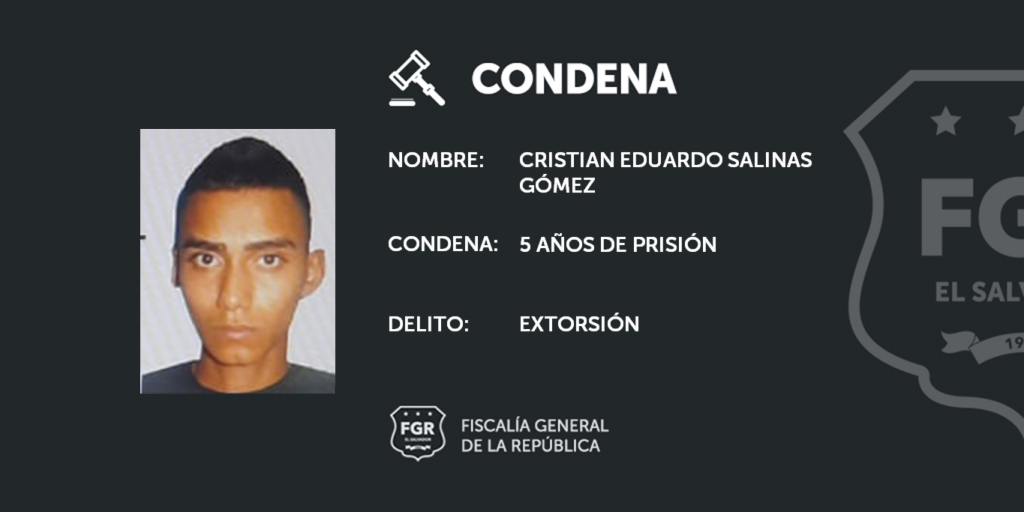 La FGR por medio de la unidad de Patrimonio Privado de la sede en Chalatenango, lograron que el Tribunal de Sentencia de esa ciudad le impusiera a 12 pandilleros de la MS HLS, Hollywood Locos Salvatruchos, condenas a 5 años de prisión cada uno, por el delito de Extorsión, en perjuicio de varias victimas.