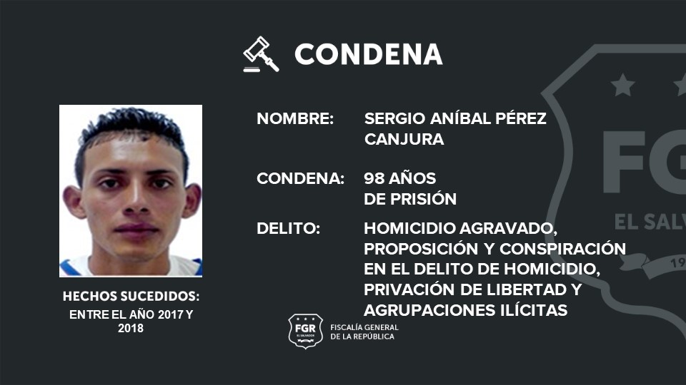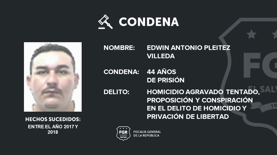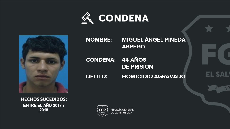 Miguel Ángel Pineda Abrego, Elías Samuel Mercado Chávez (detenido en el extranjero) y Edwin Antonio Pleitez Villeda recibieron 44 años de prisión por homicidio agravado, homicidio agravado tentado, privación de libertad y agrupaciones ilícitas.